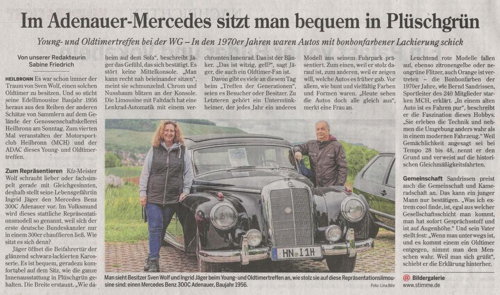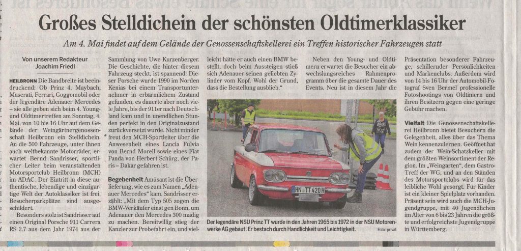Artikel in der Heilbronner Stimme zum 4. MCH/ADAC Old- und Youngtimertreffen 2025