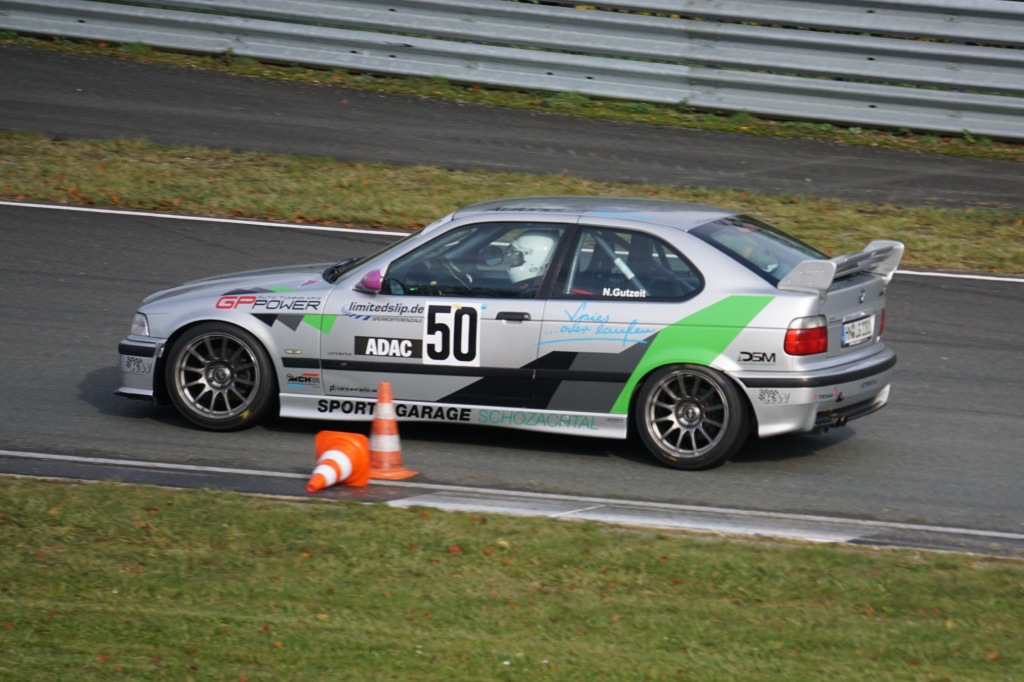Am Auftaktsamstag nutzte Nico Gutzeit die Schwächen der Favoriten durch fehlerfreie und schnelle Rennläufe zu seinem zweiten DM-Klassensieg in dieser Saison. Mit seinem BMW 318 ti in der Zwei-Liter Klasse der moderat verbesserten Gruppe F wurde Dauersieger Michael Thurner (Team ADAC Südbayern) im Mazda MX 5 lediglich dritter, nachdem der Routinier im ersten Stint über mangelnden Grip klagte. Thurners Markenkollege Axel Moser kreuzte als vierter die Ziellinie. Nico dagegen schon im Training hellwach. Zur Bestzeit im ersten Rennlauf gesellte sich der fünfte Gruppenrang – Gutzeit mit sich und seinem ca. 235 PS starken Hecktriebler mehr als zufrieden, auch wenn Routinier Thurner im zweiten Stint die schnellste Zeit fuhr.