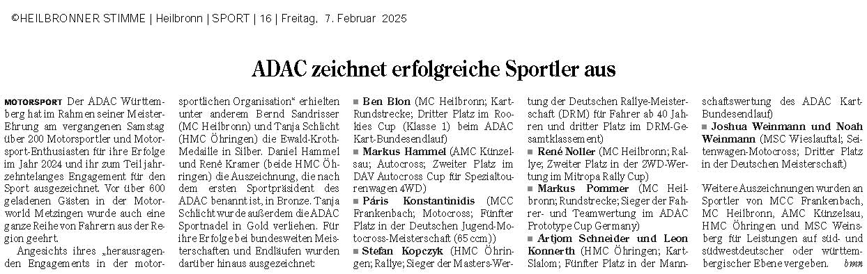 Ergebnisse der Teilnehmer vom MC Heilbronn e.V. im ADAC