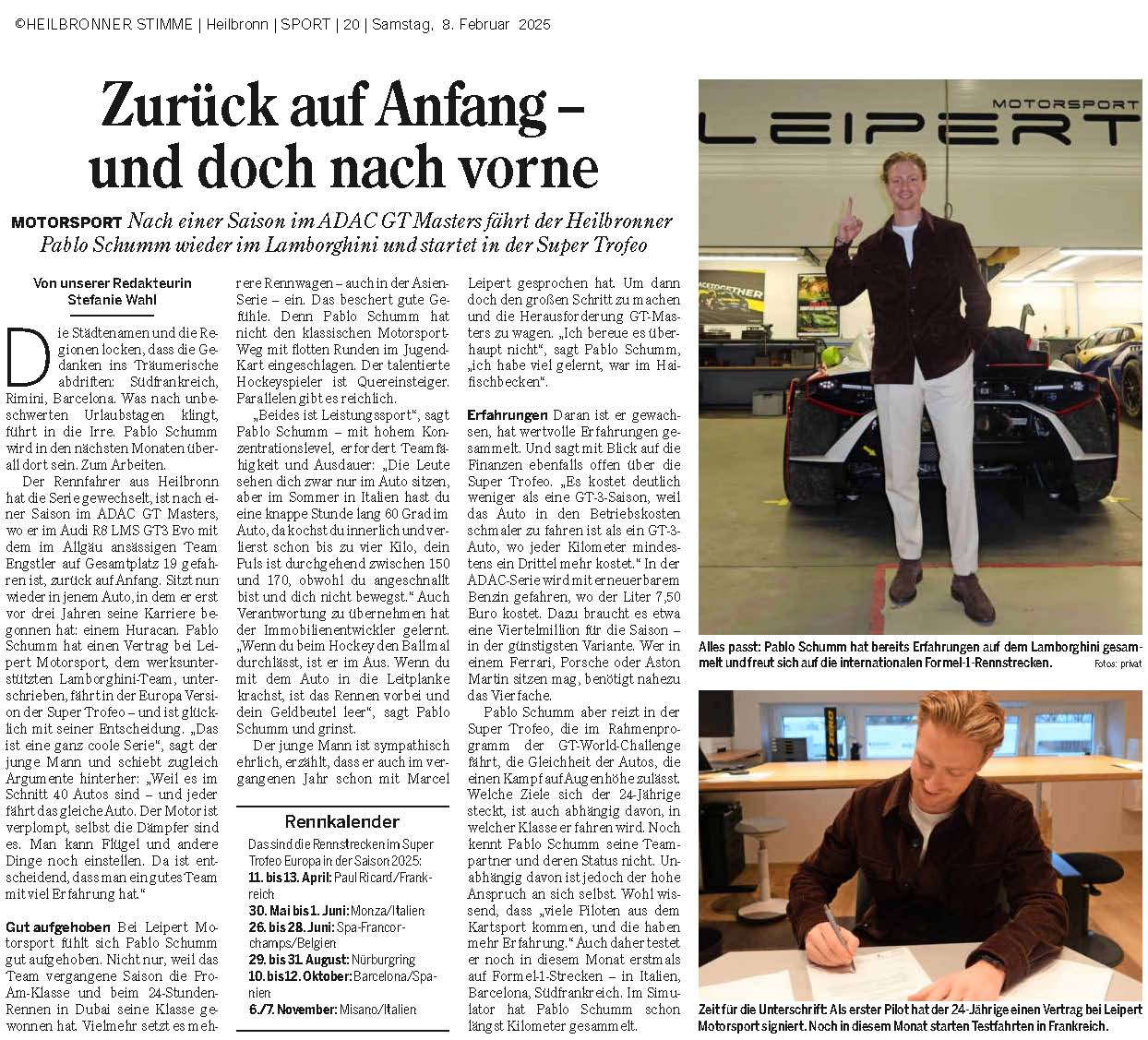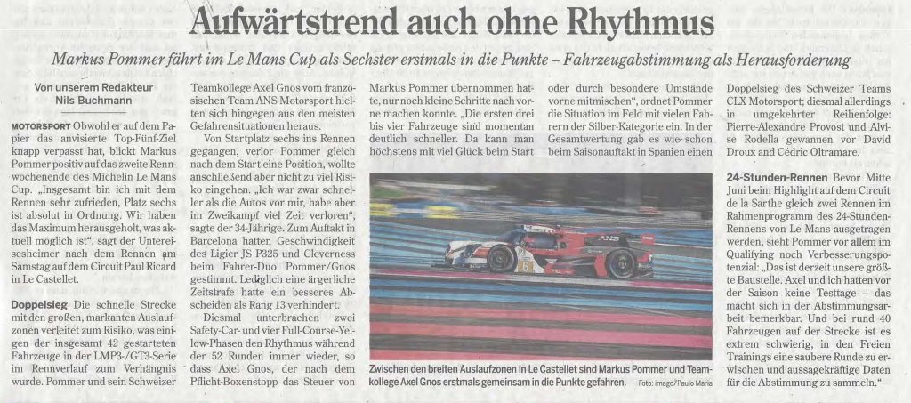 die Heilbronner Stimme berichtete vom zweiten Rennwochenende des Michelin Le Mans Cup.