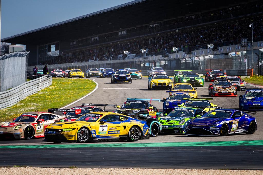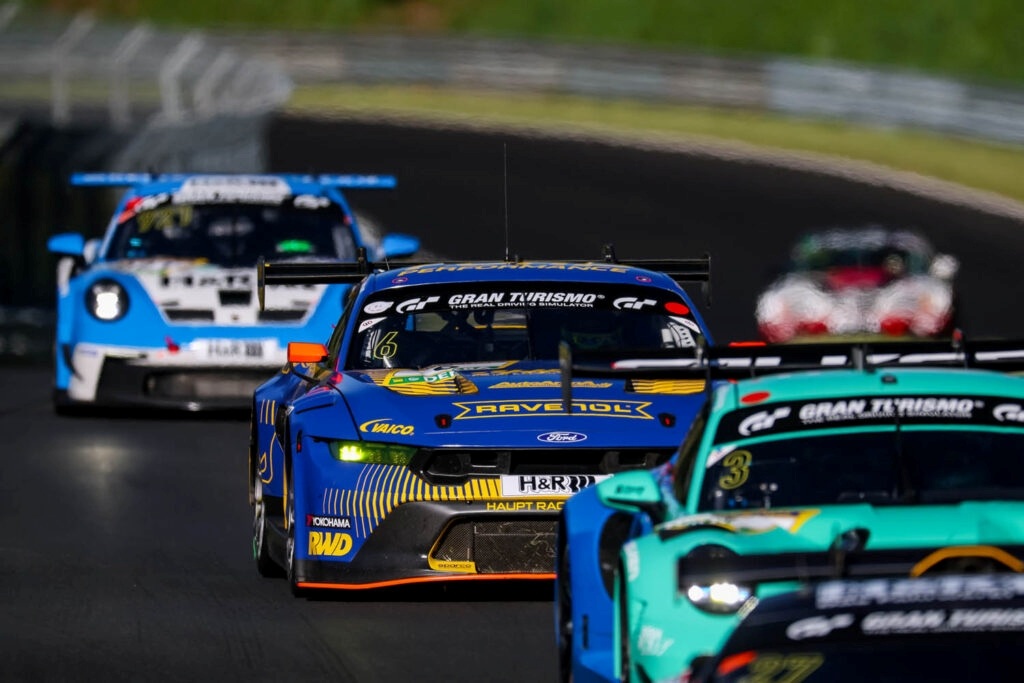Zum Rennstart dann typische Eifelbedingungen, Nieselregen und in mehreren Streckenabschnitten auch Nebel. Regen und Nebel wurden über die gesamte vierstündige Renndistanz mal mehr und mal weniger und bestimmte den Rennverlauf, die Stopps und die Reifenwahl maßgeblich. Unschlagbar dabei die beiden Falken-Porsche GT3R, die dadurch auch einen erneuten Doppelsieg feiern konnten. Der HRT-Mustang mit der Startnummer 6 überquerte die Ziellinie als Gesamtdritter, lediglich 57 Hundertstelsekunden zurück Patrick Assenheimer als Gesamtvierter. Der konnte in seinem Schlussstint das Delta von 45 Sekunden Rückstand auf das Schwesterfahrzeug zufahren. „Ein Überholmanöver wäre allerdings bei diesen Bedingungen zu gefährlich gewesen, mit dem vierten Gesamtrang sowie dem Klassensieg in der SP9 PROAM bin ich hochzufrieden“ so das Resümee von Patrick Assenheimer.