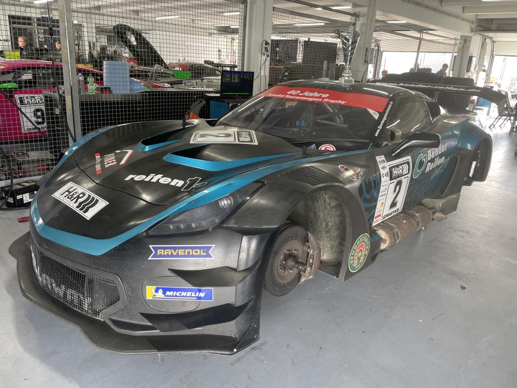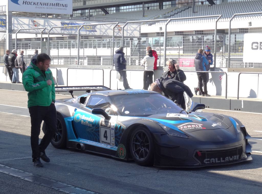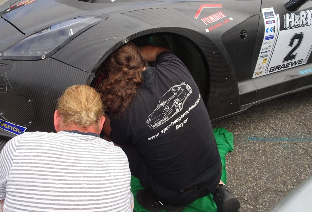Derweil hatte die Crew der Sportwagenschmiede die C7 Callaway-GT3-Corvette bereits wieder verladen. Ein Schaden im Antrieb stellte sich nach kurzem, freiem Training als ein Problem in der Zündung heraus. „Vor Ort konnten wir leider nicht wirklich etwas beheben“, so ein sichtlich enttäuschter Jürgen Bender. Der in solchen Fällen übliche Teiletausch aller Komponenten brachte keine Besserung. „Ein Fall der also nur auf einem Prüfstand zu lösen sein wird“, fügte Sportwagenschmiedechef Bayer geknickt hinzu. Also blieb den Unterländern nach dem Aufladen leider nur die Abfahrt Richtung Neckarsulm. HTS