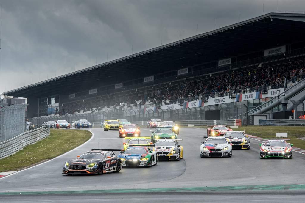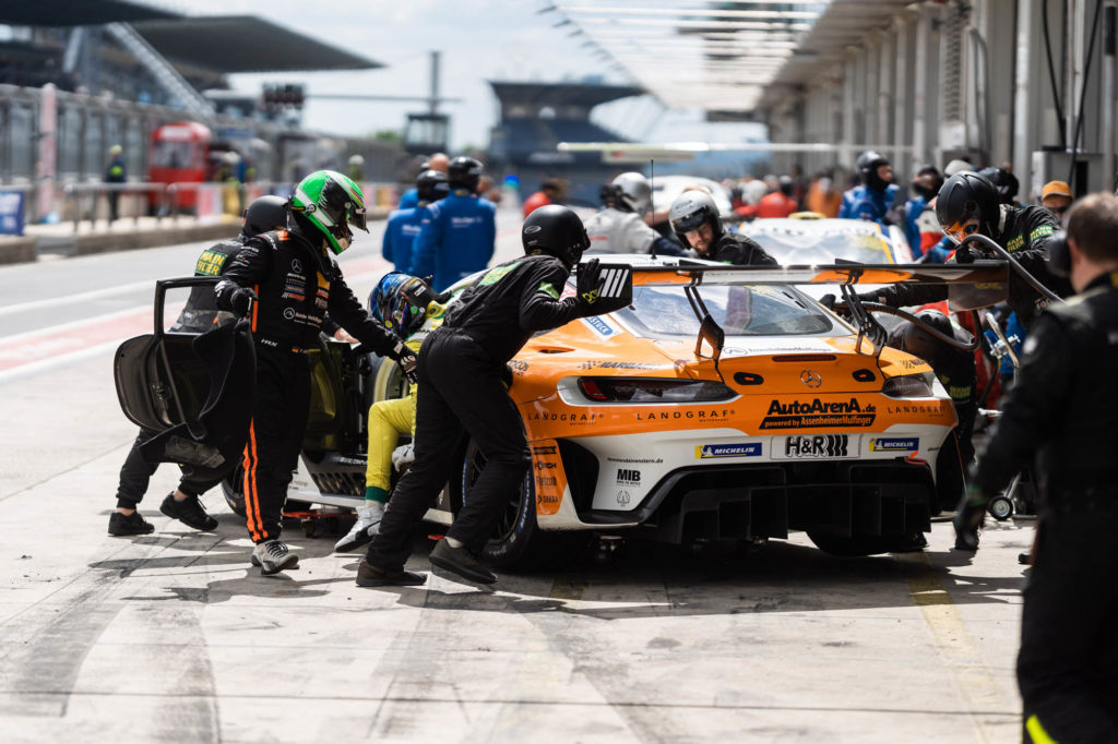 Assenheimer war bei nasser Piste vom dritten Startplatz losgefahren und hatte früh auf profillose Slicks gewechselt. „Das Risiko zahlte sich aus, auch als es wieder zu schütten begann, bin ich im richtigen Moment in der Box gewesen um mit den Regenreifen weiter pushen zu können“, erklärt Patrick Assenheimer. „Unser Black Falcon Team hatte eine geniale Strategie ausgetüftelt, die Technik und unsere fahrerischen Leistungen waren optimal, die Boxencrew hat perfekt gearbeitet, ich bin überglücklich“ strahlt der Lehrensteinsfelder bei der Siegerehrung. Zwischenzeitlich war der französische Werkspilot Kevin Estre mit Traumrundenzeiten auf trockener Piste im Manthey-Porsche 911 GT3 R von Startplatz vier an die Spitze gefahren. Doch in Runde 14 kam nach einem Unfall bei Aquaplaning das Aus für den schnellen Porsche. Patrick Assenheimer gelangen zu dieser Zeit fehlerfreie Runden unter schwierigsten äußeren Bedingungen – in Führung liegend übergab er den ca. 550 PS starken AutoArena-Mercedes nach einem Doppelstint an Manuel Metzger. Der konnte die Führung sogar noch ausbauen und die Triumphfahrt für das Black Falcon Team mit dem erneuten Gesamtsieg perfekt machen.