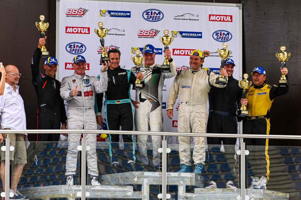 Keine Veränderung gibt es an der VLN-Tabellenspitze. Der Meimsheimer Yannick Fübrich und sein österreichischer Partner David Griessner haben die Nase ihres BMW M240i vom Pixum Team Adrenalin Motorsport weiterhin ganz vorne. „Desaster mit Schadensbegrenzung“, waren die Schlagworte von Yannick Fübrich im Ziel. Von Startplatz vier losgefahren, konnte Fübrich den 340 PS starken BMW gegen 13 Konkurrenten mit identischen Flitzern in der Cup 5 Klasse durch eine tolle Performance an die Spitze lenken. In der Starkregenphase des letzten Renndrittels übersah Fübrichs Partner Griessner bei heftiger Gischt eine Doppelgelbphase bei einem Überholmanöver. Die Zeitstrafe dafür betrug 185 Sekunden – aus dem sicheren Klassensieg wurde dadurch ein zweiter Platz, der punktemäßig gerade noch so für die VLN-Tabellenführung reicht. Der Klassensieg ging so an den BMW von Sorg Motorsport, der dritte Platz mit deutlichem Rückstand an die Truppe von Performance-Motorsport. „Unsere Pace war gut, die Abstimmung des BMWs hat gepasst, das Team hat perfekt gearbeitet, einzig der Lapsus beim Überholen unter Doppelgelb hat nicht ins Bild eines ansonsten perfekten Renntages gepasst“, resümiert Yannick Fübrich bei der Siegerehrung. (Wilfried Ruoff)