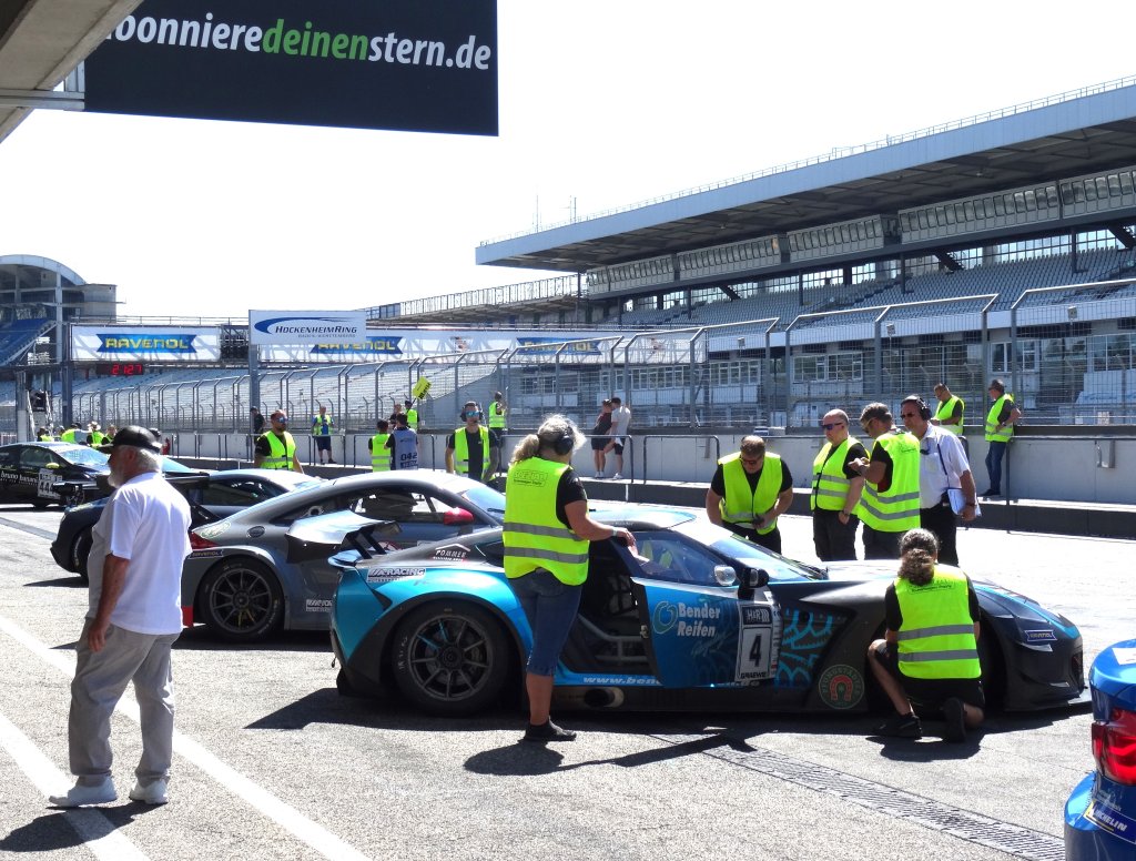 Ein wahrer Racing-Krimi danach das Zeittraining für Rennen zwei. Zweimal „rote Flagge“ wegen Unfällen. Langsam kam Bender wieder in seinen Rhythmus. Am Ende Audi, Ferrari, Chevrolet, BMW und zwei Lamborghinis vorne am Start. Bender in der 2. Startreihen direkt hinter dem Ferrari von Oliver Plassmann.