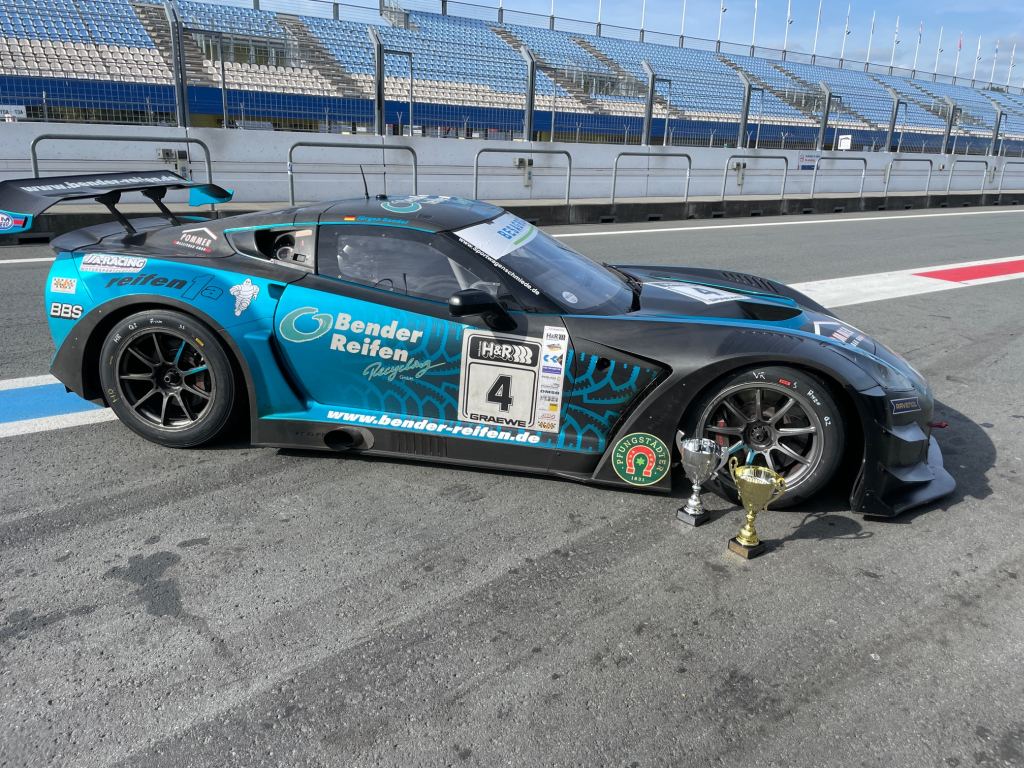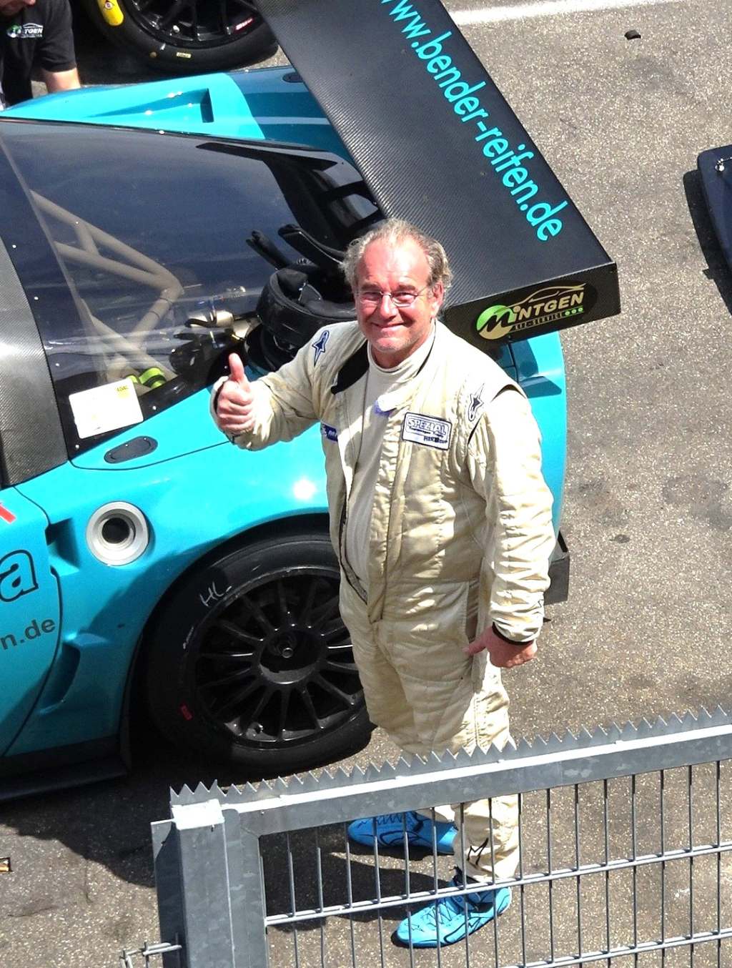 HTS-Foto: Jürgen Bender in der Sieger-Corvette nach dem 4.Sieg am Ring