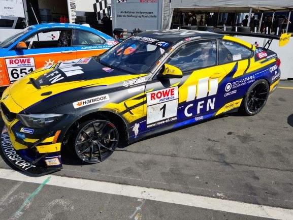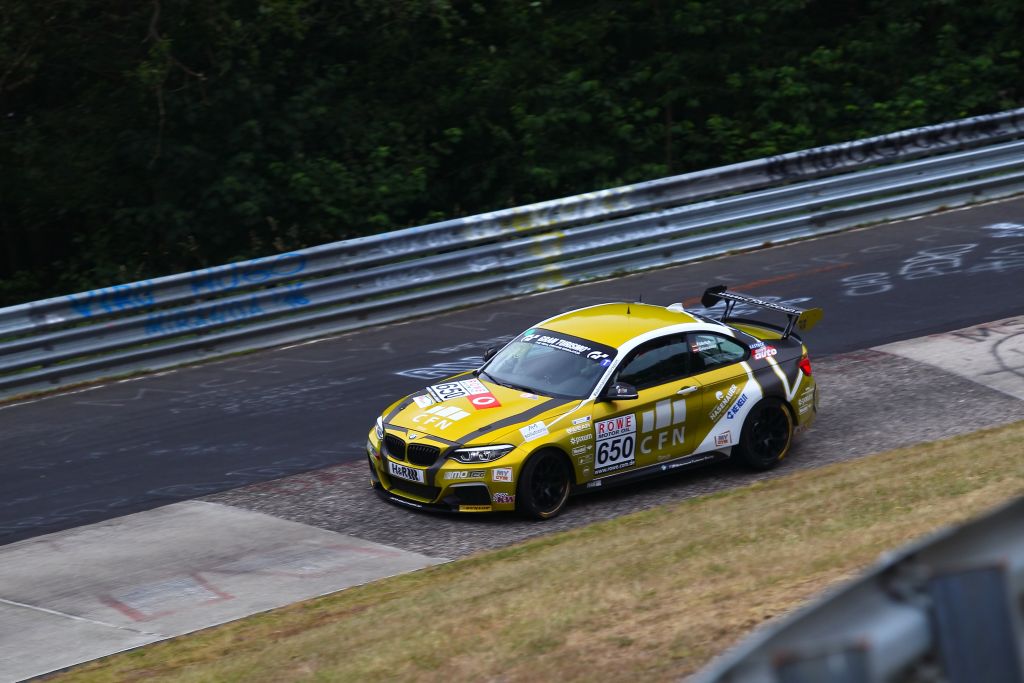 Für einen Wechsel an der Spitze der VLN-Gesamtwertung sorgte MCH-Racer Nummer zwei, Yannick Fübrich aus Nordheim. Zusammen mit seinem österreichischen Partner David Griessner fuhr Fübrich den dritten Sieg in Folge in der Cup 5 Klasse heraus. Hier waren 17 identische BMW M240i Racing Cup gestartet. Der vom Pixum Team Adrenalin Motorsport eingesetzte, 340 PS starke Hecktriebler von Fübrich und Griessner mit einem neuen „Outfit“ beim vierten Lauf. „Die für Fahrzeugtechnik, Folientechnik und Chiptuning zuständige CFN Group aus Frauenzimmern prangt als neuer Hauptsponsor auf dem BMW und hat gleich für einen weiteren Schub gesorgt“ so Yannick Fübrich. Der 27jährige fuhr wie Assenheimer einen Doppelstint und übergab nach zwei schnellen Überholmanövern das Auto an Griessner. Der verteidigte die Führung abgeklärt vor den Dauerrivalen Nico Otto und Lars Peuckert im Team Honert-Scheid-BMW. Die Zielflagge sah das Topduo mit zehn Sekunden Vorsprung und durfte sich zudem über den 29. Gesamtrang freuen. Durch ihren dritten Sieg übernahmen die beiden BMW-Piloten Fübrich/Griessner auch die VLN-Tabellenspitze.