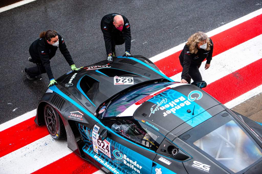Knappe 10°C am Samstagmorgen und leichter Luftzug. „Nein, kein richtiger Wind, mit dem man der Fahrer beim Richtungswechsel zu kämpfen hat, aber eben leichte Zugluft, die den Asphalt kühlt, dass meist leider zu kühl für das ausreichend schnelle Aufheizen der Rennreifen“, so Bender skeptisch. Die Jungs von der Sportwagenschmiede hatte für das erste Training leicht gelaufene Reifen montiert. "In der kühleren Jahreszeit lässt sich leider nur schwer der richtige Luftdruck vor dem Training festlegen“, so Technikchef Bayer. Einen neuen Satz zu verbraten, machte also beim Auftakt wenig Sinn „Und die bei so einem Wochenende exakt einzuhaltenden Zeitabläufe werden eh immer sehr schnell zum Zeitproblem für Crew und Fahrer. "Tatsache ist aber, dass der Luftdruck maßgeblich mitbestimmt, wie schnell die Reifen auf Temperatur kommen“, fügt Bender hinzu. Denn die Reifentemperaturen können am Ende helfen Topp-Rundenzeiten in den Asphalt zu radieren.