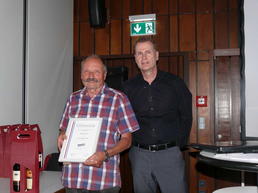 Eberhard, der Vorstand des Motorsportclub Heilbronn e.V. verleiht dir die Ehrenmitgliedschaft und ich danke dir für deine treue Verbundenheit zum MCH.