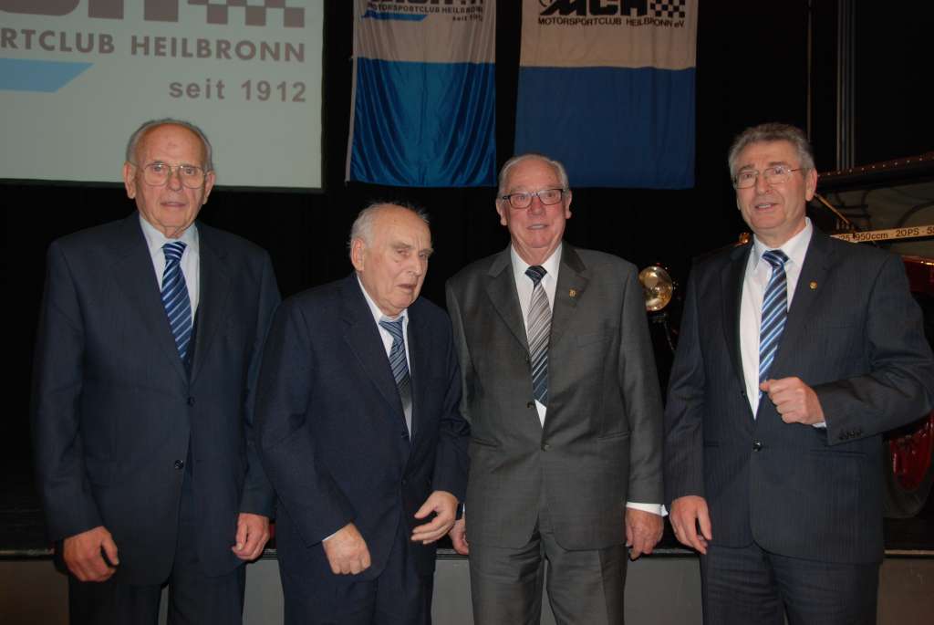 Eine ganz besondere Ehre für den Motorsportclub Heilbronn war die Anwesenheit der drei Mitglieder Werner Sautter, Edmund Knöll und Manfred Frey. Sie gehören zu den Wiedergründungsmitgliedern, die nach den Kriegsjahren den „Motorsportclub Heilbronn am Neckar“, Untersektion des ADAC am 02. Juli 1947 wieder ins Leben gerufen haben und wurden hierfür auf der Bühne geehrt.