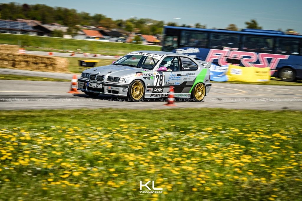 Samstags bereits nach dem ersten Stint ein enttäuschter Nico – Michael Thurner vom ADAC Südbayern mit seinem Mazda MX5 deutlich schneller, dahinter der Nordracer Marco Hackenberg von der RG Oberberg im BMW 320. Thurner auch in Stint zwei mit Laufbestzeit, schlussendlich Platz drei für Nico mit satten 6,67 Sekunden Rückstand auf den Mazda. Nach dem Parc ferme änderten die Gutzeits das Setup indem die Spur-, und Sturzwerte verändert wurden. Auch sonntags die drei Podestplatzinhaber erneut in einer eigenen Liga in der Zweiliterklasse der Gruppe F. Deutlich schnellere Zeiten von Nico mit seinem BMW 318ti, doch Thurner und Hackenberg konterten. Letzterer allerdings mit je einem Pin pro Lauf, somit Rang drei. Da er die erneuten Rennlaufbestzeiten von Thurner nicht erreichen konnte, fuhr Nico in Stint zwei taktisch und nicht mehr „letzte Rille“, das Resultat war der sichere zweite Klassenplatz und eine Endzeit, die 3,8 Sekunden schneller war als die vom Samstag. Die 4.33.00 Minuten über die 8800 Meter Rennslalomparcours waren dann auch Garant für den dritten Gruppenrang F, sowie den sensationellen achten Gesamtrang. In Nico‘s Klasse F10 waren elf Starter, hinter den drei auf dem „Stockerl“ ein deutliches Loch von 5,5 Sekunden zu Platz vier. „Wir hoffen auf die neue Getriebeeinheit in Kombination mit der Schaltbox, die Konkurrenz hat allen Anschein nach über den Winter aufgerüstet“, so Papa Harald Gutzeits Resümee.